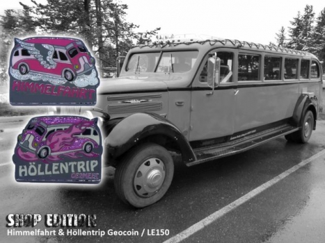Himmelfahrt & Höllentrip Geocoin Pink Bus LE150